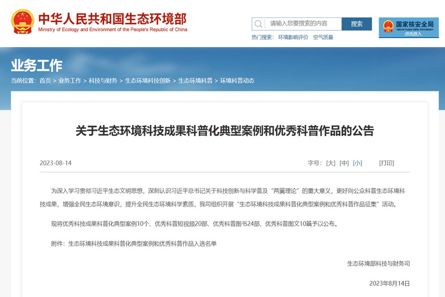 南大环规院研发成果荣获生态环境部科技成果科普化十佳典型案例
