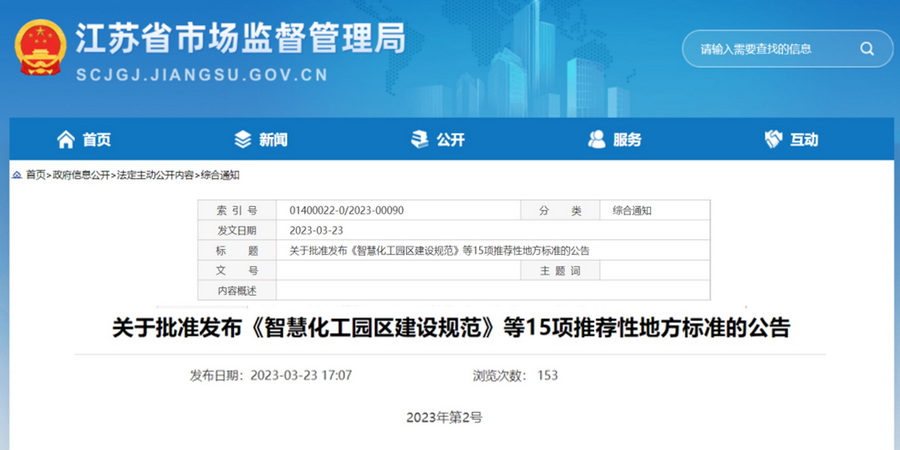 智慧园区、标准先行,南大环规院参编的江苏省《智慧化工园区建设规范》正式发布