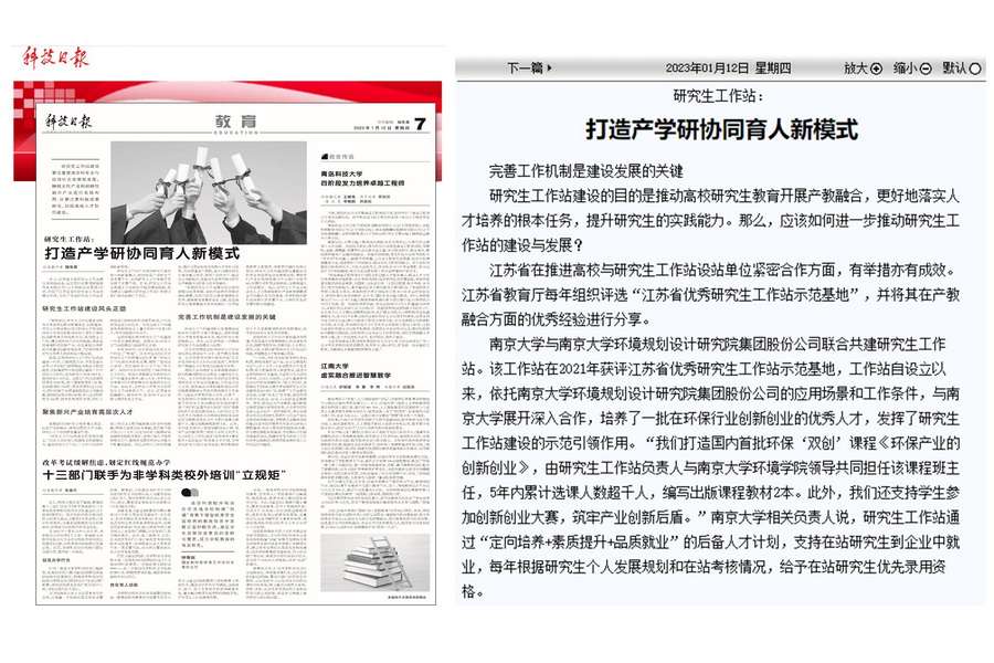《科技日报》报道南京大学、南大环规院产教融合育人经验