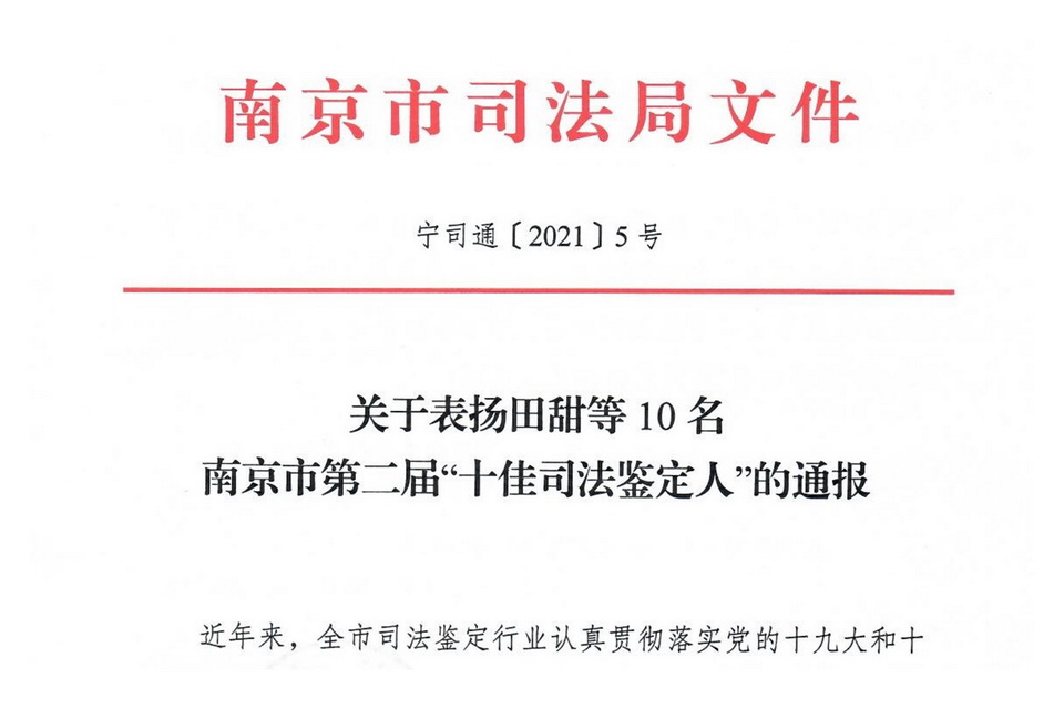 - 集团青年专家张瑞峰荣获南京市“十佳司法鉴定人”称号