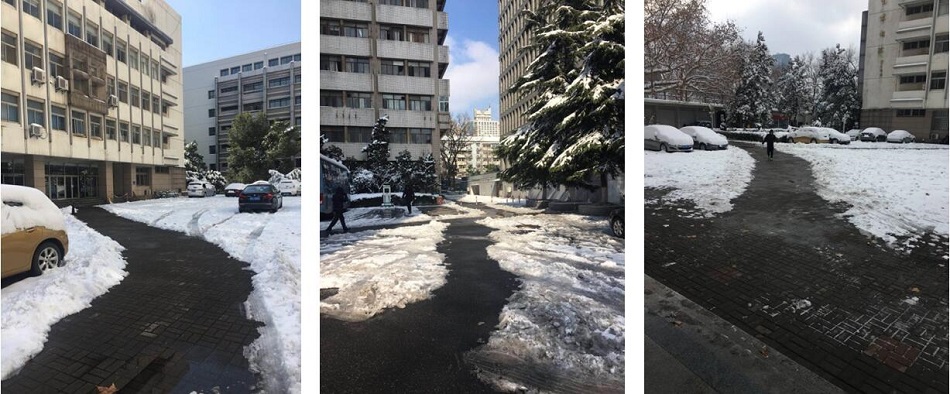今晨,我院的10多名同事拿上铁锹、扫帚等工具,自发组成扫雪小分队,积极加入到南京大学校园扫雪大军中,铲除校园及周边道路的积雪,保障出行安全。