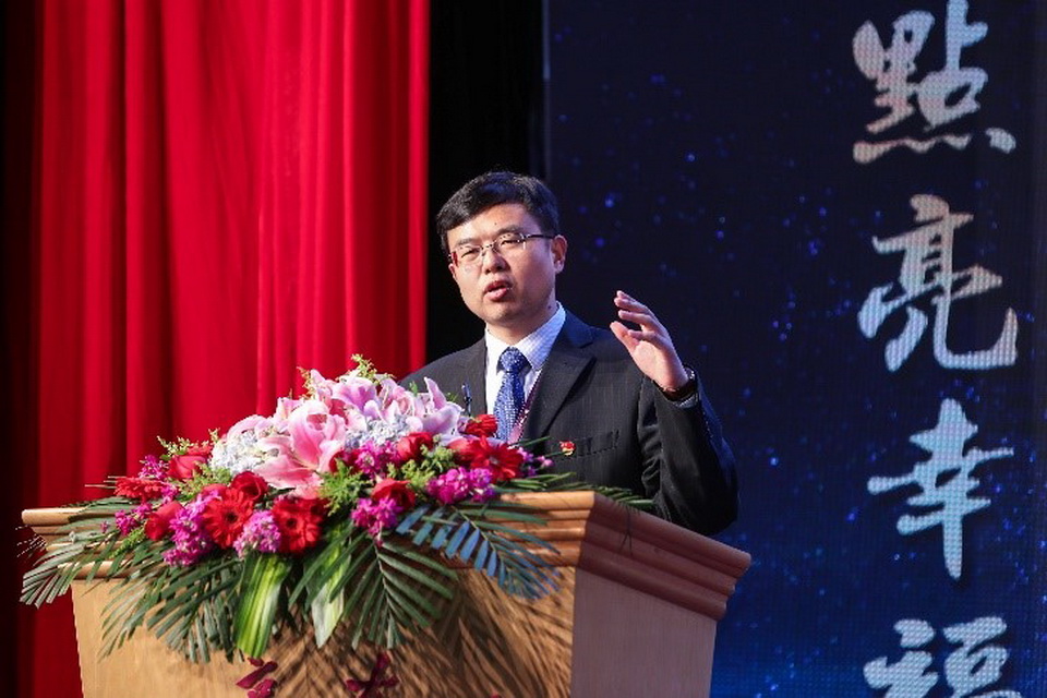 在奏唱国歌之后,南京大学副校长陆延青发表了热情洋溢的讲话,祝贺我院2018年取得的丰硕成果,代表南京大学对我院做出的贡献表示充分肯定,对员工和家属们的付出表示感谢,并提出了建议和希望。