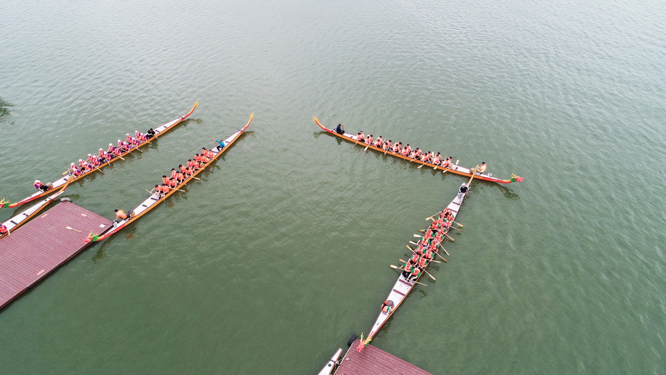 来自南大资产公司、南大建规院、南大出版社等南大系企业的八支队伍,以龙舟赛的形式一决高下,展现南大人团结奋进的风采,共同为母校庆贺117周岁生日。随着发令口号响起,八支龙舟劈波斩浪,飞驰向前。鼓槌落,船桨起,鼓声齐响,水花四溅,各队队员呼号铿锵,各支龙舟你追我赶,争先恐后地冲向终点线。经过激烈的角逐,南大药业代表队凭借稳定的发挥获得冠军。