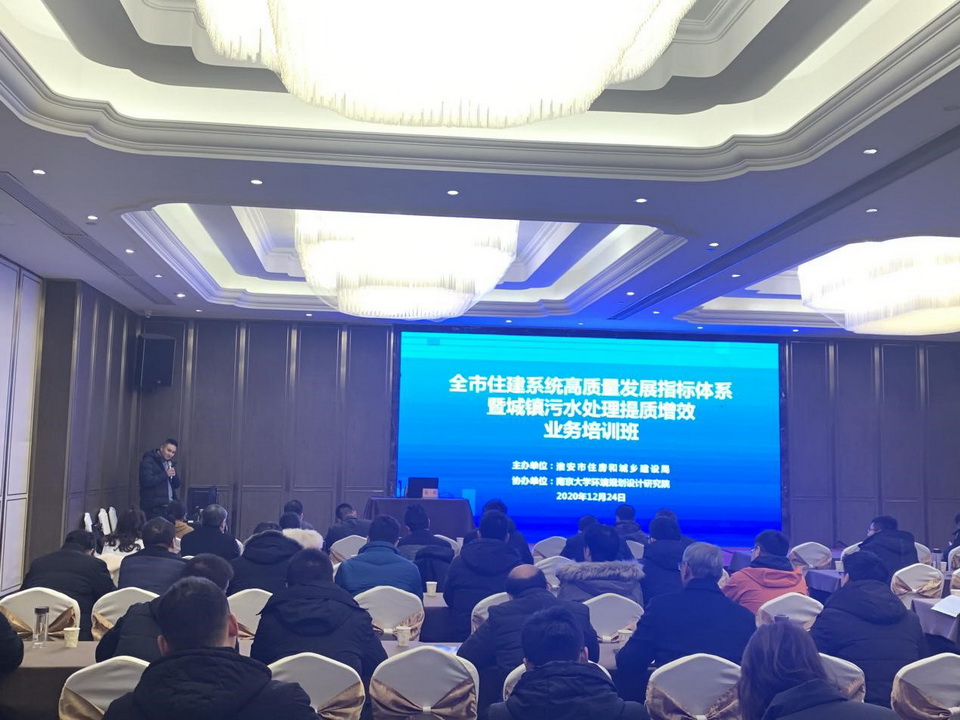 12月23日-24日,由淮安市住建局主办、南大环规院集团承办的全市住建系统高质量发展体系暨城镇污水处理提质增效业务培训班在淮安市顺利召开。市住建局党委书记、局长秦浩出席开班仪式并作动员讲话,省住建厅计财处处长王佳剑、南京市水务局总工程师骆颖等行业专家受邀授课,市住建局相关处室单位领导、各县区住建局主要领导、分管领导及相关业务科室负责人等120余人参加培训学习,活动由集团工程设计分院工程设计三所所长杨泼主持。