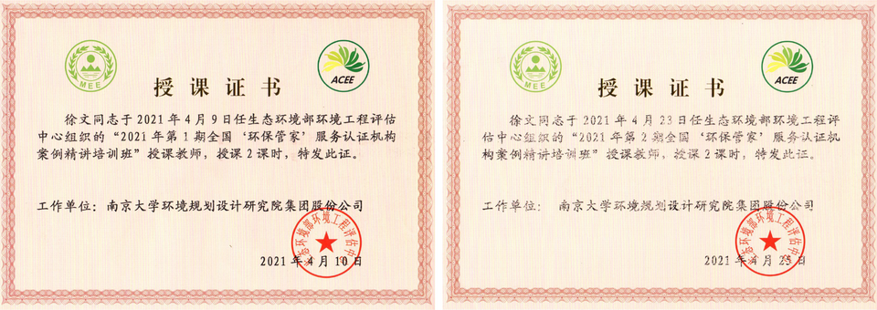 近期,生态环境部环境工程评估中心分别在广州和上海举办了第1期和第2期《2021年全国‘环保管家’服务认证机构案例精讲培训班》。南大环规院集团环境规划研究院青年专家徐文应邀为学员做了《产业园区‘环保管家’案例解析与探讨》专题培训。