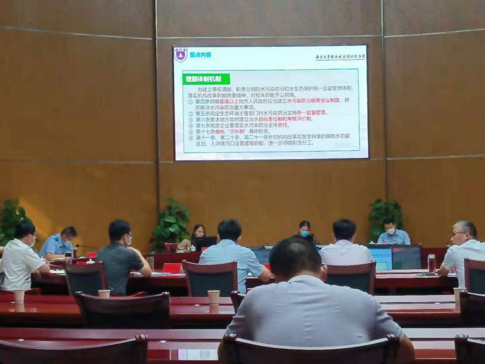 2021年8月19日,金湖县人民政府组织召开十四届六十次常务会议,县长万旭东、常务副县长刘玉春、副县长徐源、唐凤娥、朱亚、杨鸿明、叶楠等领导出席了本次会议。南大环规院集团专家、环境安全研究所副总工程师周玲高工应邀在会议上为县政府领导及各参会单位人员解读《江苏省水污染防治条例》(下称《条例》)。