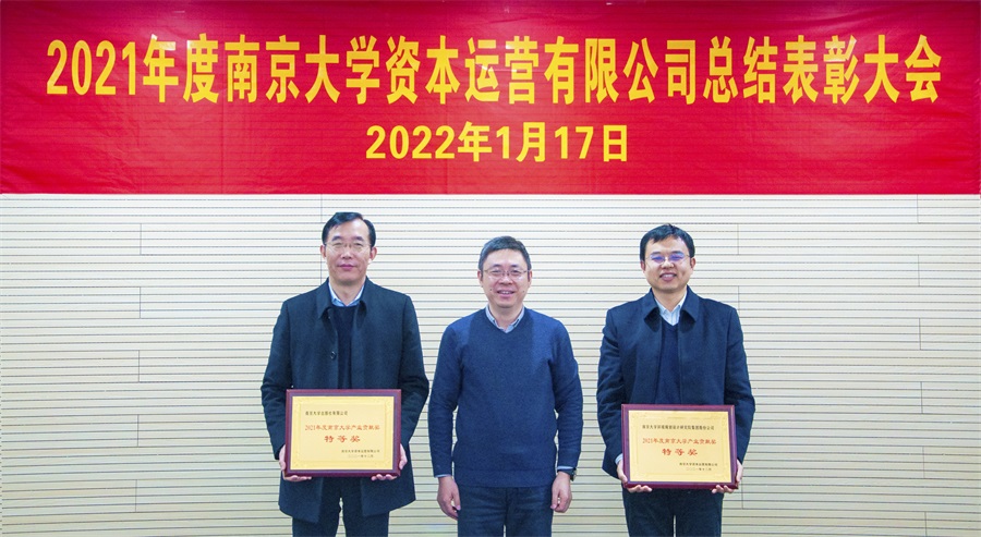 1月17日,2021年度南京大学资本运营有限公司总结表彰大会在鼓楼校区召开,南大环规院集团和南大出版社继续蝉联“南京大学产业贡献特等奖”,南京大学副校长陆延青教授向集团总裁陆朝阳颁发了奖牌,这是集团第五次蝉联南京大学科技产业最高奖。