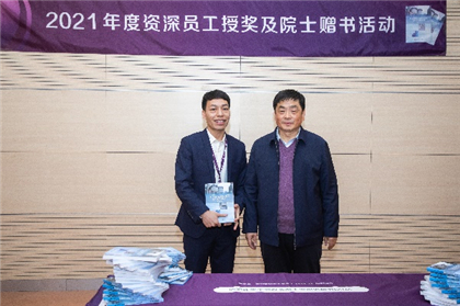 首先,任洪强院士的学术报告《应对双碳战略的水污染防治产业发展思考》拉开了整场活动的序幕。任院士高屋建瓴,阐述在双碳背景下污水处理厂迈向碳中和的创新路径,列举分析国内外先进案例,指出制约我国污水处理厂迈向碳中和的四项制约因素,并提出三大对策推动水污染防治产业的高质量发展。讲座深入浅出,逻辑清晰,引起强烈反响,大家踊跃提问,互动热烈。讲座后又举行了“2021年度资深员工授奖及院士赠书仪式”,任洪强院士亲自为集团五年资深员工代表赠送了亲笔签名的学术著作。