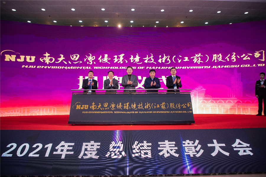 之后,集团子公司“南大恩洁优环境技术(江苏)股份公司”举行了揭牌仪式,邹亚军副校长、任洪强院士、尹建康董事长、陆朝阳总裁、徐遵主总经理共同为新公司揭牌。