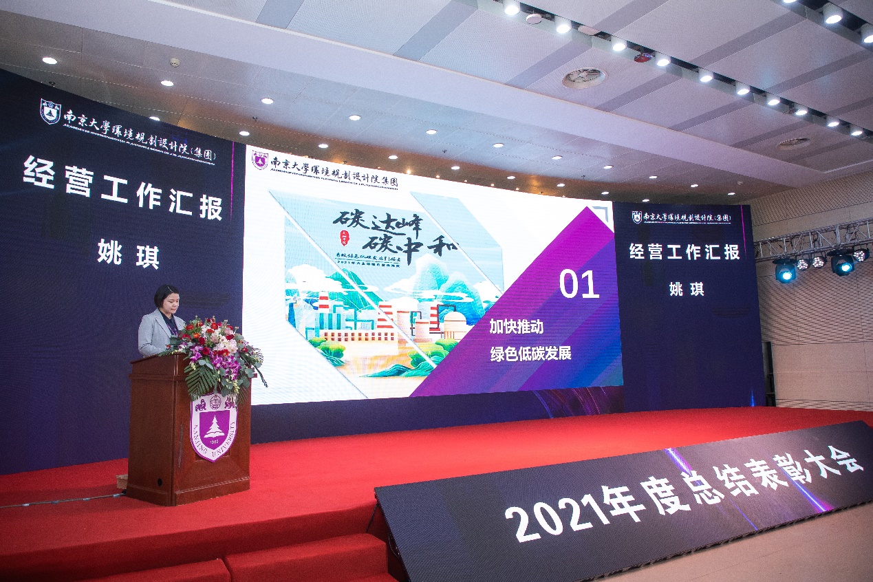 随后,集团副总裁姚琪代表集团管理层向大家汇报了2021年度集团经营工作情况。她在汇报中指出,围绕深入打好污染防治攻坚战的大目标,2021年全体员工以高昂的斗志,饱满的热情,开拓创新、奋力拼搏,用智慧和技术推动了客户和社会的可持续发展。
