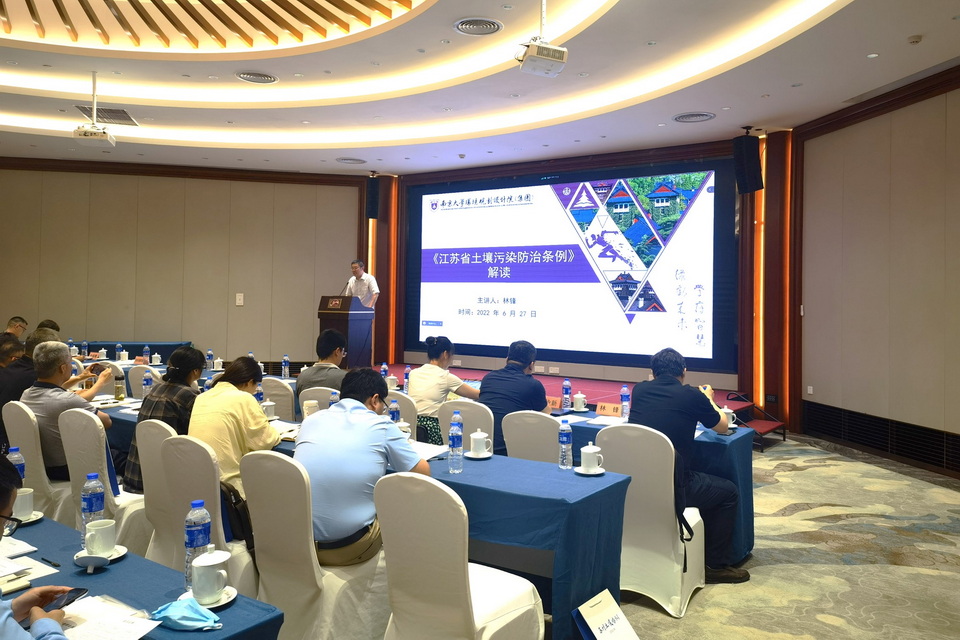 2022年6月27日,由苏州市生态环境局主办、苏州市环境科学研究所承办的“苏州市土壤污染防治工作培训会(第一期)”在常熟市成功举办。苏州市生态环境局党组成员、副局长孙丽青,常熟市委常委、副市长万晓军,苏州市常熟生态环境局局长王晓东等领导出席培训并致辞。南大环规院集团助理总裁林锋正高级工程师受邀,在培训会上进行了“《江苏省土壤污染防治条例》解读”课程分享。
