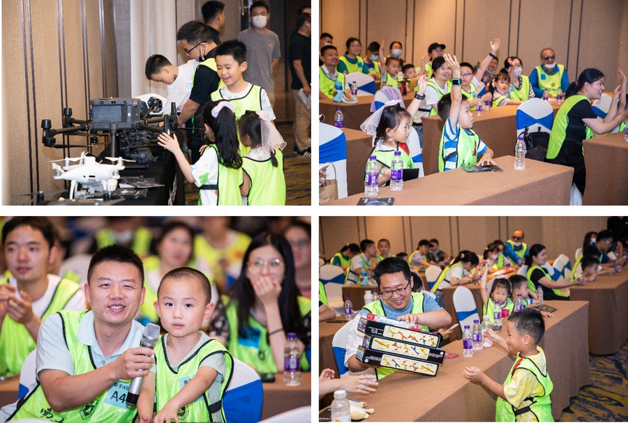活动伊始,小朋友们参观室内展示的无人机和航模,并与伙伴们分享自己了解的无人机知识,忙得不亦乐乎。随后,由专业讲师带来了无人机理论讲解,小朋友们纷纷踊跃举手回答问题,同时也收获了自己的航模奖品,让人羡慕不已。