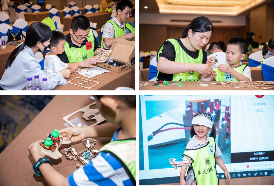 考虑到下午气温较高,观看完飞行表演,小朋友们和家长返回室内,动手组装自己的无人机,培养动手能力的同时也学习了无人机组成结构和飞行基本原理,大朋友则自愿留在室外,由专业教练带队体验无人机飞行及航拍,或返回室内体验飞行模拟器。