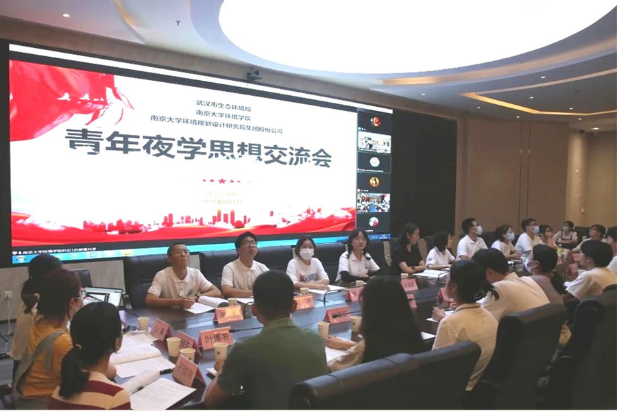 8月8日晚,在三方战略合作的基础上,武汉市生态环境局与南京大学环境学院、南大环规院集团联合举行了生态环境青年夜学思想交流会,武汉、南京两地“时空连线”,思想碰撞,读经典、学先进、谈心得、写体会,三家单位40余名优秀青年通过线上线下方式参加活动并发言。