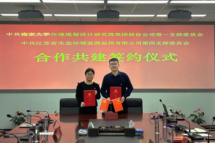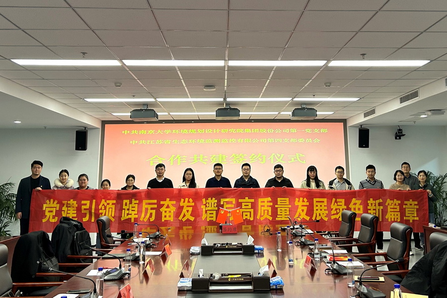 为深入学习贯彻习近平新时代中国特色社会主义思想和党的二十大精神,充分发挥党建引领作用,构建“支部共建、资源共享、优势互补、协调发展”的党建工作新格局,推动党建与业务工作深度融合,2022年12月8日,南京大学环境规划设计研究院集团股份公司第一党支部与江苏省生态环境监测监控有限公司第四党支部举行党建共建签约仪式,双方支部全体党员参加本次活动。