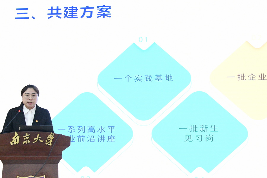 随后,南大环规院党委副书记李良介绍了集团立足教育、科技、人才的交汇点,构建“产教融合、技术领先的产学研联合创新中心”,服务高校、服务社会的根本初衷,以及坚持党建引领,助力立德树人,为“南大式奋进”注入产业力量的特色做法,并表示将牢牢把握“学思想、强党性、重实践、建新功”的总要求,把开展主题教育与推进学校“奋进行动”相结合,以高质量发展建绿色新功。新生学院党委委员、安邦书院党支部书记吴可介绍了环规院与新生学院的合作共建情况,表示将结合主题教育的总体要求,围绕“奋进行动”工作主线,充分发挥“大思政课”实践基地在拔尖创新人才培养中的积极作用。