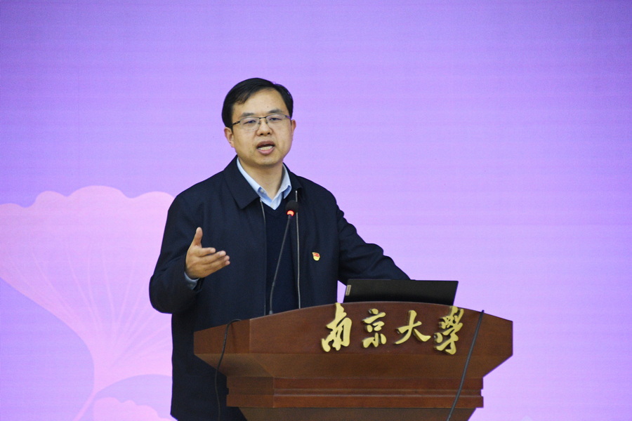 南京大学党委常务副书记杨忠从学习内容、学习方式、学习成效等方面充分肯定了本次主题教育联学活动取得的效果。他进一步对推进主题教育提出新的要求:在学思想方面,要原原本本读原著、学原文、悟原理,坚持多思多想、学深悟透,做到整体把握、融会贯通;在强党性方面,要在政治上、思想上、行为上与党中央保持高度一致,早日成长为合格的优秀的共产党员,源源不断为党注入新的力量,让党的红旗高高飘扬;在重实践方面,要了解中国、理解中国,从思想上、理念上、行动上真正形成对中国特色社会主义的认同,充分认识中国特色社会主义道路的优越性;在建新功方面,要刻苦学习,不断提升专业水平和实践能力,努力成长为合格的社会主义建设者和接班人。杨忠强调,希望广大青年能够积极参与主题教育,不辜负美好光阴,争做有担当、有作为的时代新人。