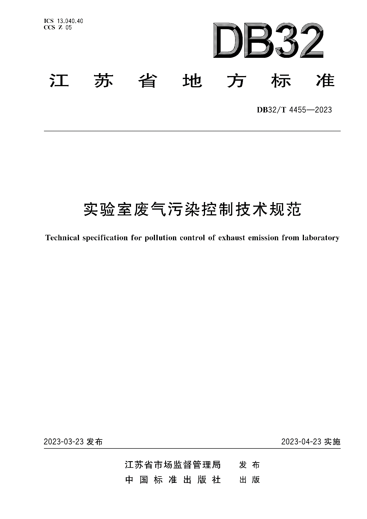 《实验室废气污染控制技术规范》(DB32/T 4455-2023)由江苏省生态环境厅提出,南大环规院工程技术中心牵头起草,是国内首个涵盖实验室无机和有机废气的污染控制技术规范。标准实施后有利于引导实验室规范易挥发化学试剂的使用和管理、废气的收集和净化,减少实验室废气排放,对进一步改善江苏省环境空气质量具有重要意义。