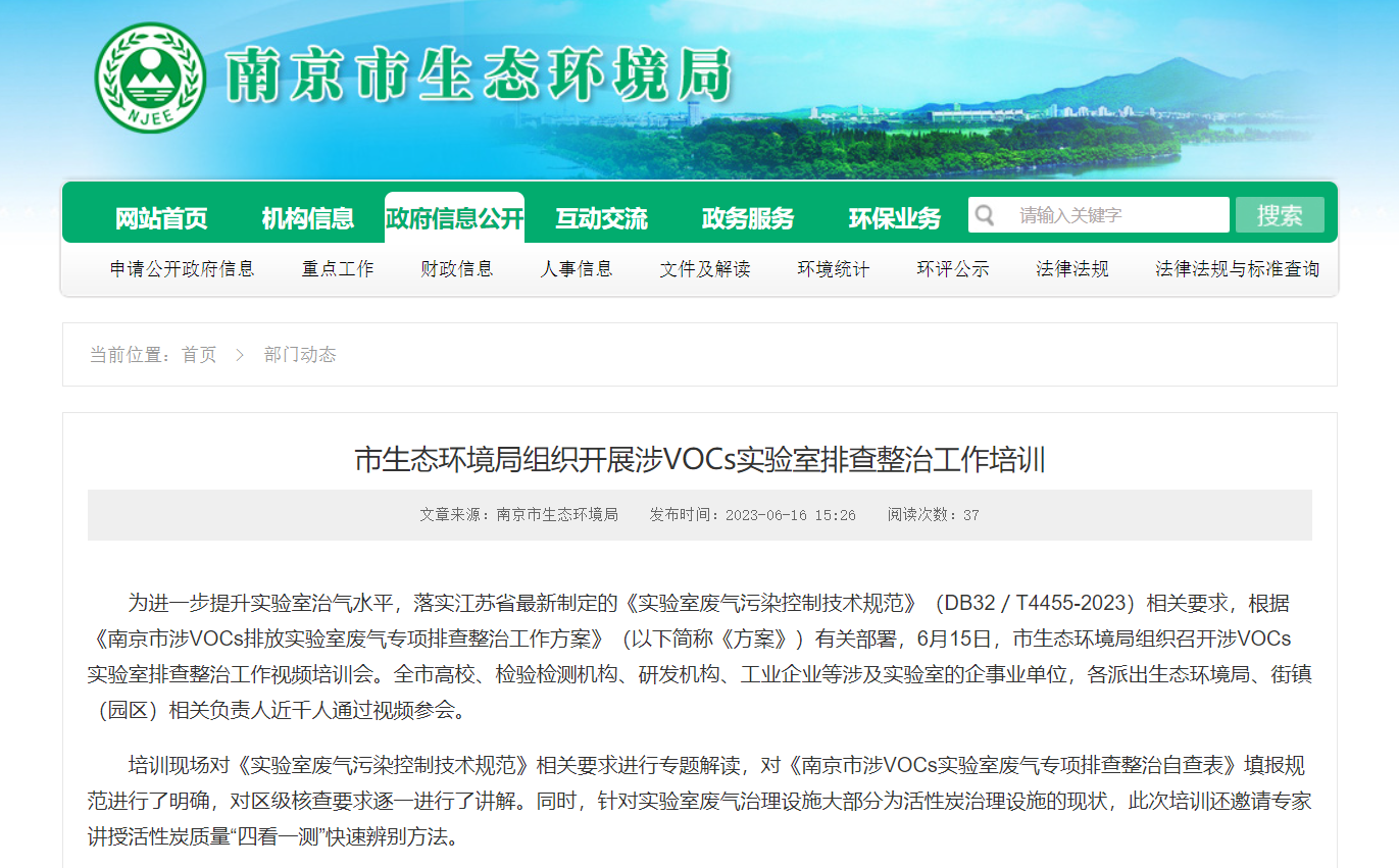 为进一步提升南京市实验室治气水平,落实《实验室废气污染控制技术规范》(DB32/T4455-2023)相关要求。近日,南京市生态环境局组织召开涉VOCs实验室排查整治工作视频培训会,委托南大环规院该标准编制组开展标准专题解读。