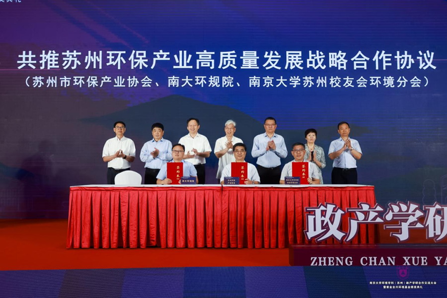苏州市委常委、副市长唐晓东在致辞中指出,苏州将充分用好政产学研合作交流平台,探索新机制、新模式,围绕生态环境保护、产业发展、成果转化等方面重点发力,加强党建联盟、多方合作,把政府的组织协调优势、南大的学术研究实力和市场的产业创新活力充分结合,不断提升高等教育对产业发展和城市发展的引领支撑作用,进一步推进校地深度融合,合力推动生态文明建设和绿色低碳产业发展不断迈上新台阶。