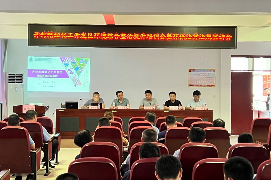 8月22日,河南省开封精细化工开发区管委会组织召开园区环境综合整治提升培训会暨环保法律法规宣讲会,南大环规院邀请有关专家为园区企业授课,开发区管委会相关领导、企业安环负责人参加本次培训。