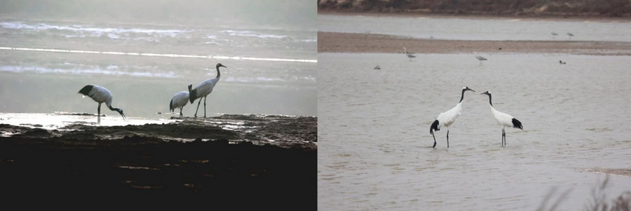 旭强修复区观测到的丹顶鹤(左图:2018年1月;右图:2023年11月底)