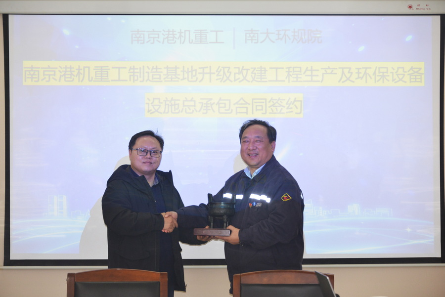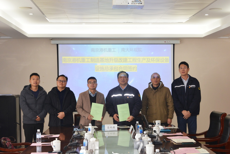 近期,南京港机重工制造有限公司与南大环规院举行了“南京港机重工制造基地升级改建工程-生产及环保设备设施购置项目”总承包合同签约启动仪式,这标志着南大环规院工程技术中心研发的港机行业废气处理成套技术装备正式落地。南京港机重工董事长张群、副总经理曾庆顺、副总经理潘超,南大环规院常务副总裁吴俊锋、党委副书记李良、工程技术中心主任徐遵主等领导出席了仪式。