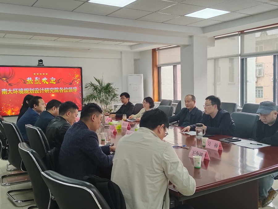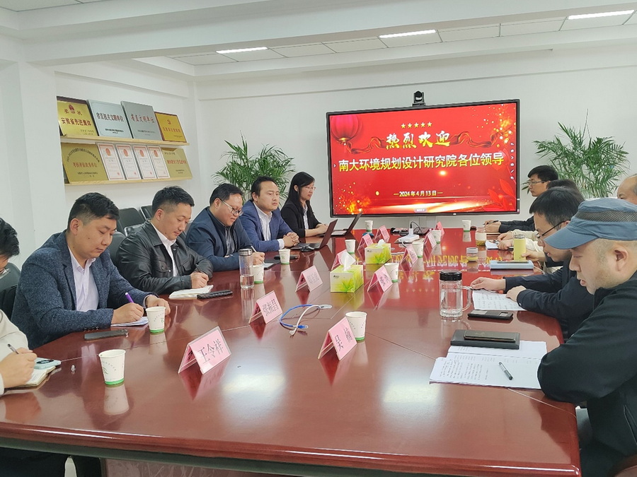 4月13日上午,南大环规院董事长吴俊锋带队赴安徽省生态环境科学研究院交流,安徽省生态环境科学研究院院长鄢达昆、副院长张浏出席座谈交流。