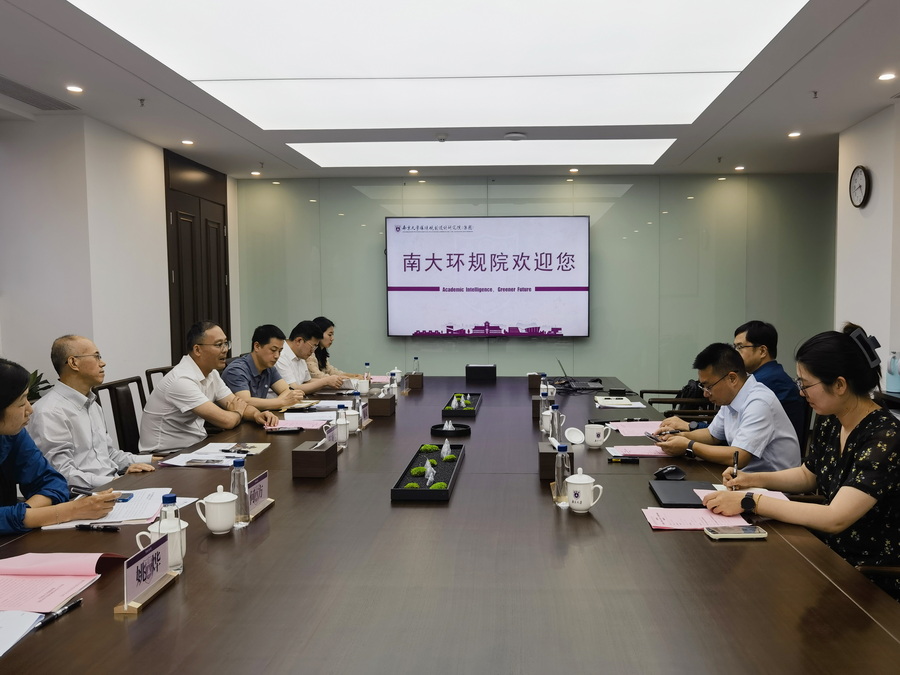 6月13日,南京市发展改革委副主任、党组成员贾尚斌,市科技局二级巡视员陈为生及市统计局、江北新区科技创新局等部门领导一行7人调研南大环规院。环规院党委书记、首席专家陆朝阳,党委副书记、董事会秘书李良,计财办、科技办等负责同志参加交流。