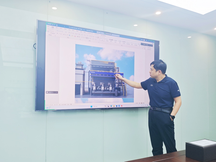 陆朝阳在讲话中指出,目前正处在传统RTO换代革新的窗口期,性能优良、性价比高的新一代RTO技术装备市场需求巨大,是环境行业最有市场潜力的技术装备之一。他肯定了工程技术中心在该领域的研究成果、技术实力和品牌价值,要求大家在继续做好RTOC研发和推广工作的同时,抓住时代机遇,进一步加大研发投入,充分利用数字孪生技术赋能工业装备的技术革新,在处理效果、智能网联、制造水平等方面持续引领行业方向,并有效控制制造成本和运行费用,从本质上提升客户价值和市场竞争力。徐遵主对数字孪生技术和新型工程装备的研发提出了具体要求,并作出了系统性的工作部署。