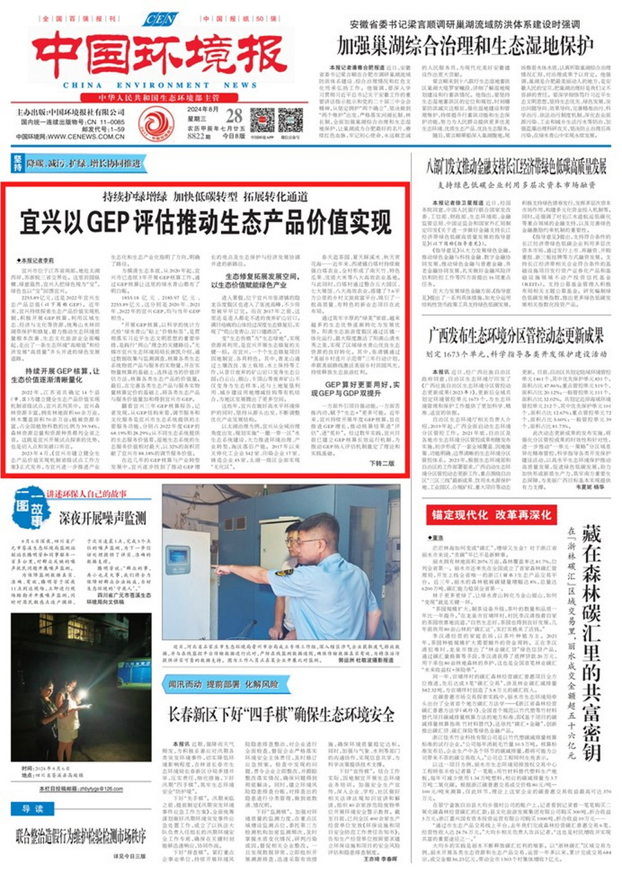 头版头条!南大环规院助力宜兴市GEP评估推动生态产品价值实现