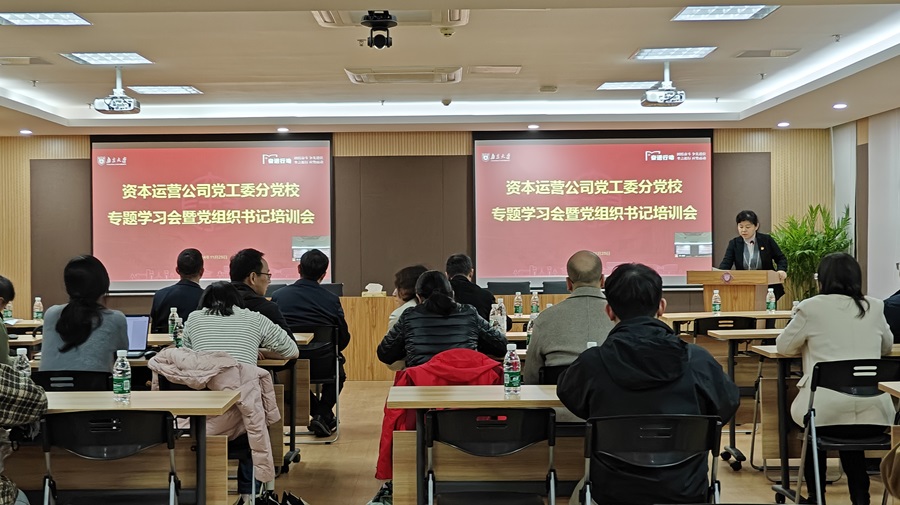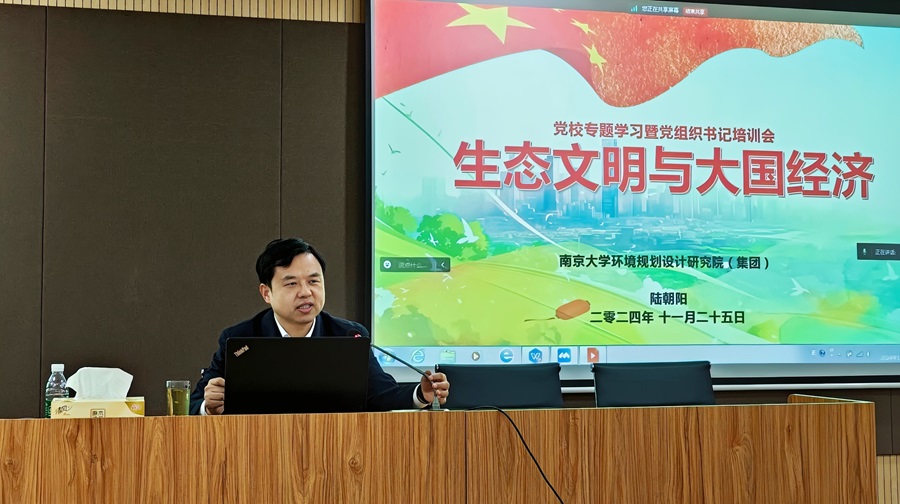 近日,由南京大学资本运营有限公司党工委组织的分党校专题学习会暨党组织书记培训会顺利举办。资本运营公司党工委书记王洪涛、董事长、总经理方文晖出席会议,南大环规院党委书记、首席专家陆朝阳在培训会作题为《生态文明与大国经济》的专题党课,会议由资本运营公司纪工委书记邱玥琰主持。