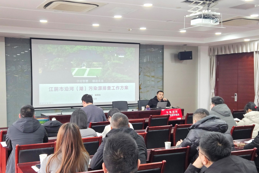 为扎实推进水生态环境质量提升,深入打好碧水保卫战,江阴市近日启动全域沿河(湖)污染源排查整治专项行动。2月20日,在市生态环境局组织召开的专项工作推进会上,南大环规院专家团队受邀开展专业技术培训,为污染源精准排查提供科技支撑。
