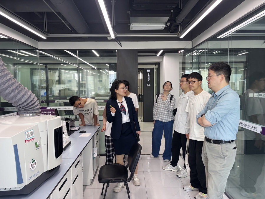 随后,师生们来到江苏省农用地土壤污染深度调查样品库、重点实验室和工程技术中心实验室参观学习,同学们近距离接触了气相色谱仪、电感耦合等离子体质谱仪等先进设备。同学们不仅了解了这些仪器在环境检测中的主要检测指标,罗军教授还深入浅出地介绍了仪器的工作原理和操作规范,让同学们对科研仪器的使用有了更直观的认识。